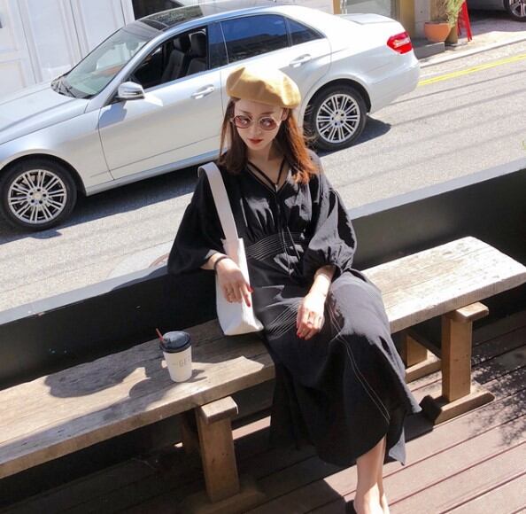 ハイウエスト切替で胸下に施されたギャザーが甘くガーリーな