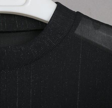 透け感がありブラックカラーでも軽い印象で着用できるワンピースです。