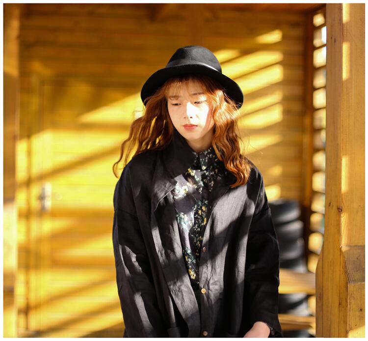 ナチュラル可愛い コットンリネンロングシャツコート ボタン ポケット ドロップショルダー A1007