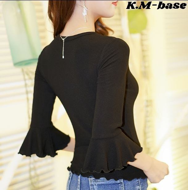 お袖が可愛いラウンドネック。
