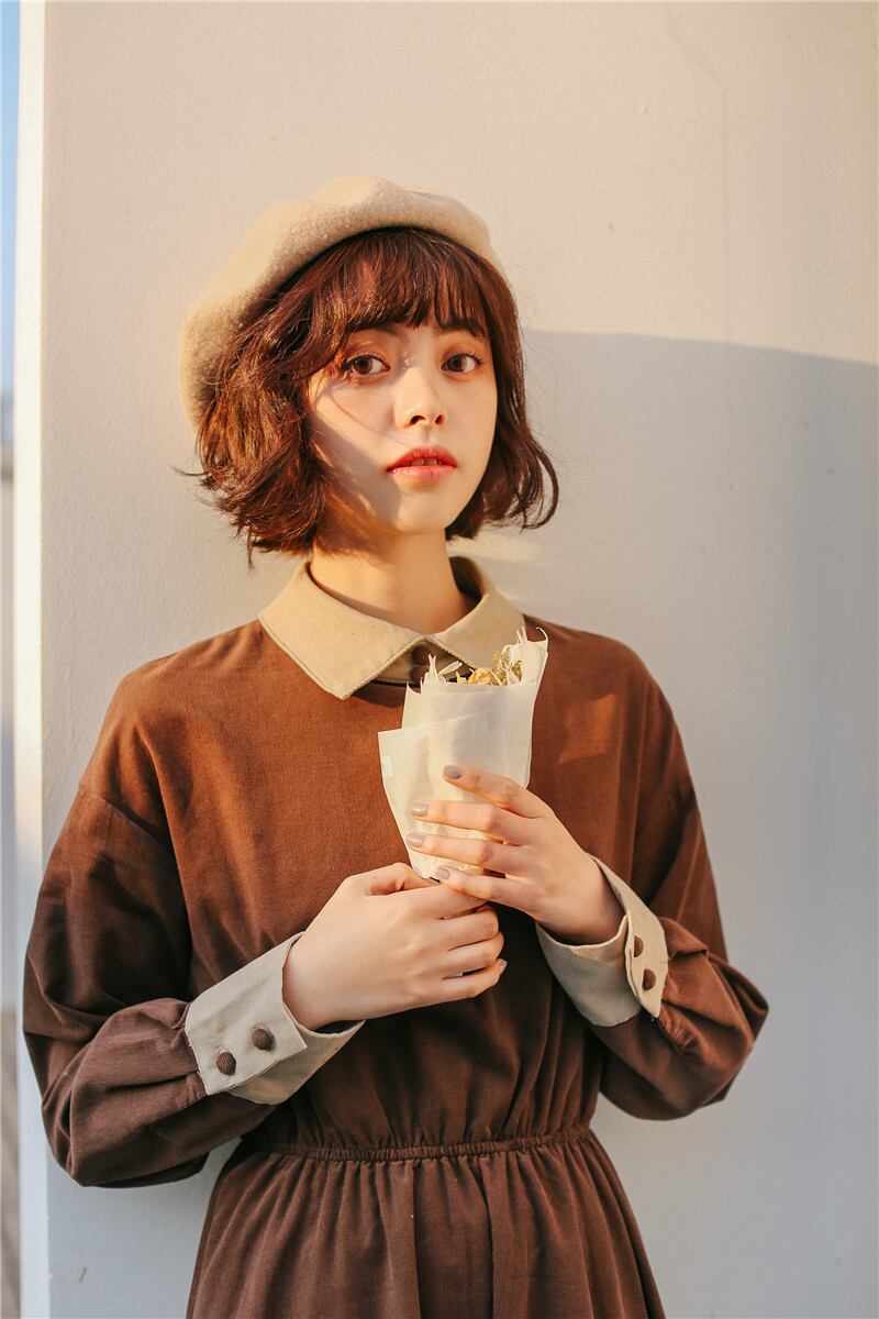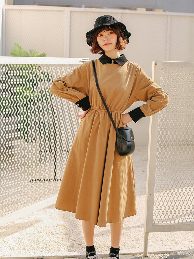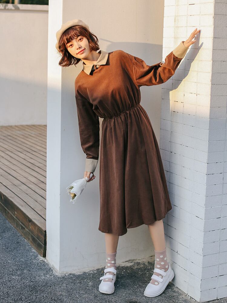 秋冬らしいコーデュロイの2トーンカラーワンピース。