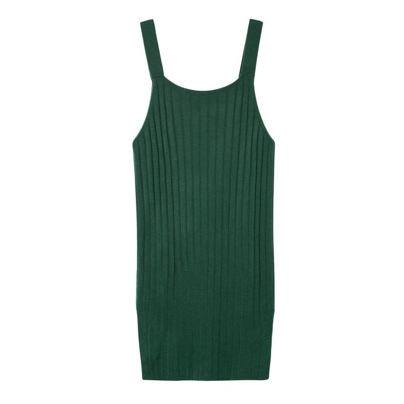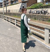 スッキリIラインシルエットのニットキャミワンピース。