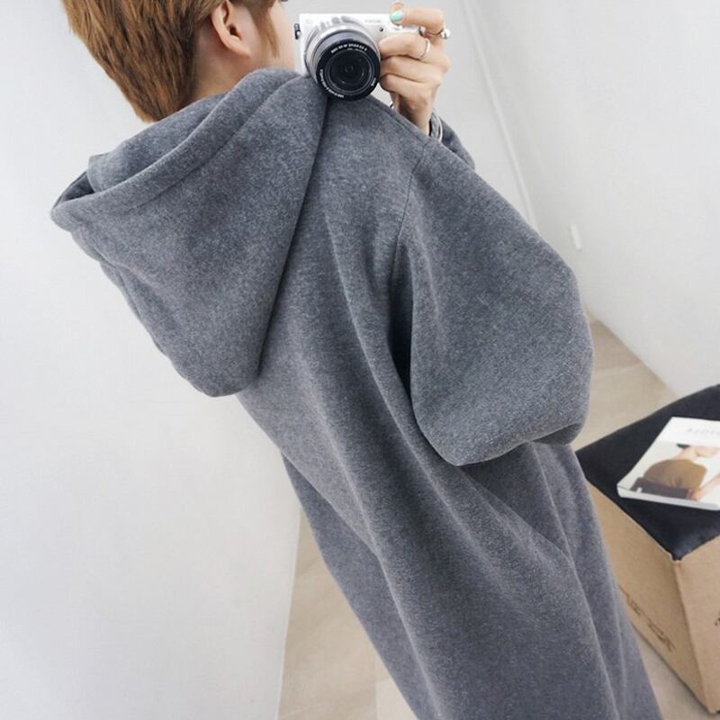 デイリーウェアに最適なフード付きスウェットロングワンピース。