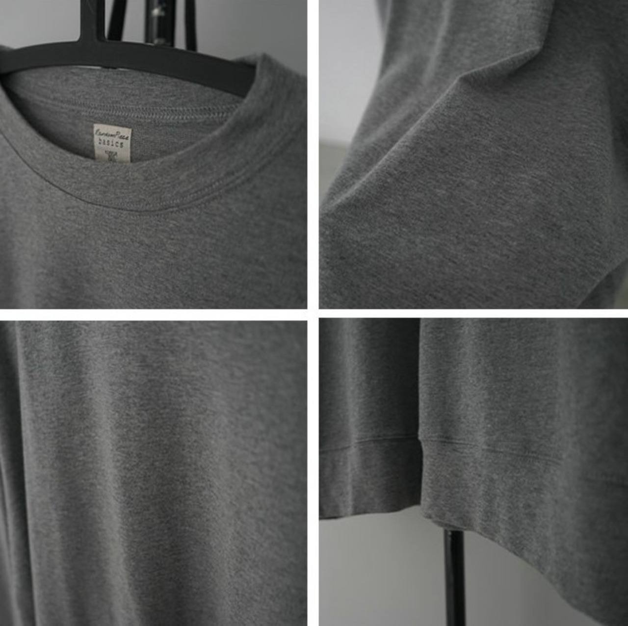 シンプル ベーシック 長め丈長袖カットソー チュニック ゆったりシルエット ドロップショルダー カジュアル デイリーウェア D1024