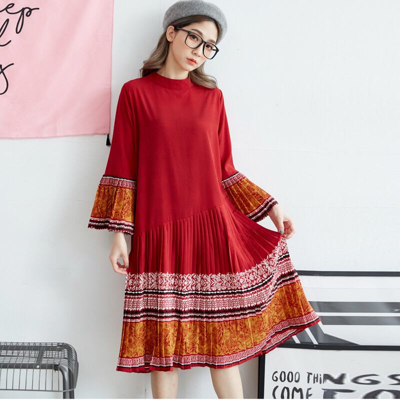 個性的な民族調柄がオシャレなミディ丈ワンピース。