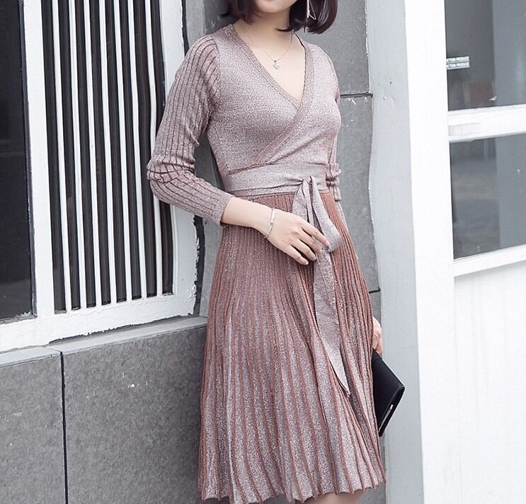 ラメの入った華やかな印象のコットンニットのワンピース。