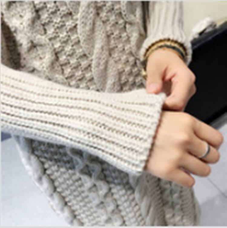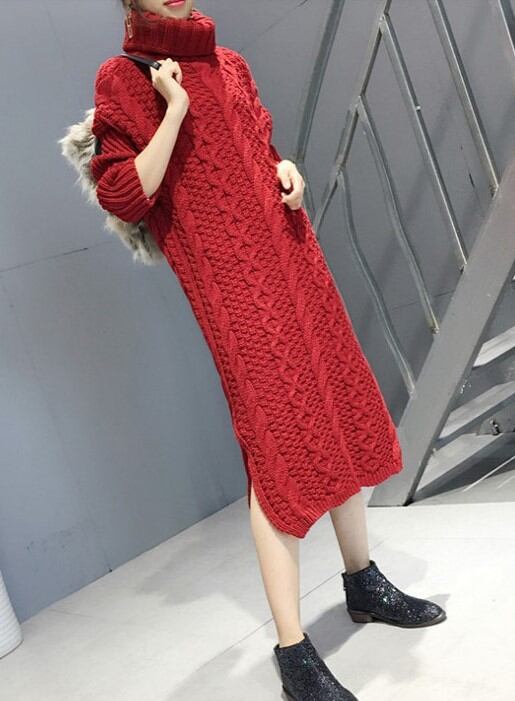 ざっくりとした編地とボリュームのある太めのタートルネックが