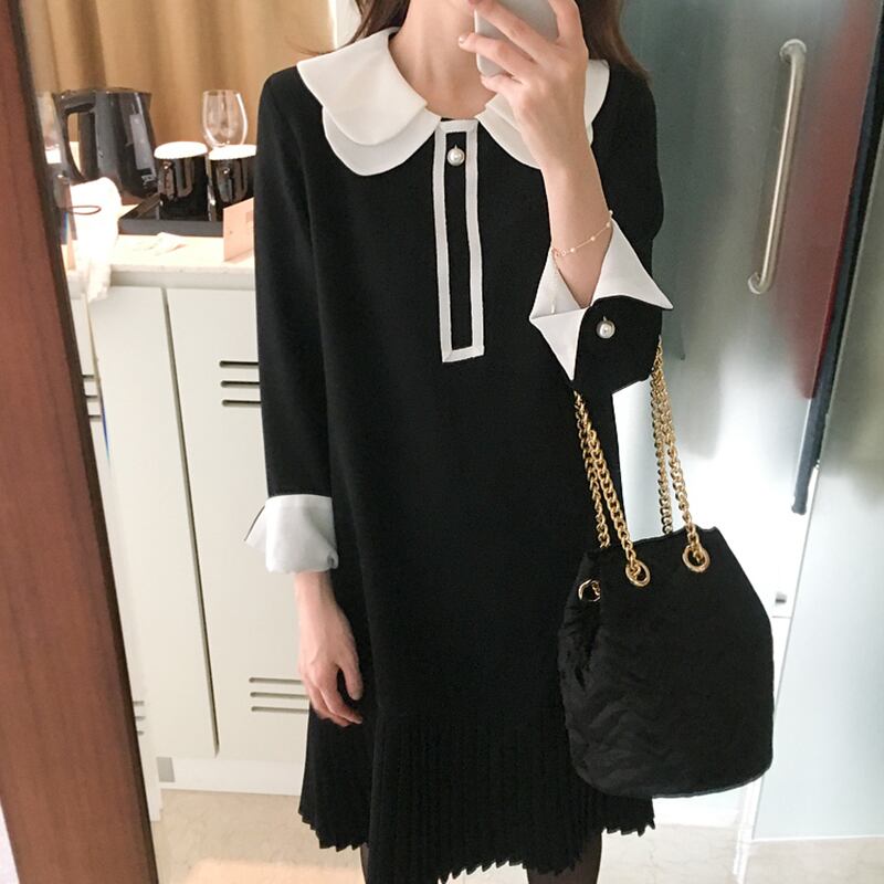 ブラック×ホワイトのバイカラーがオシャレなワンピースドレスです。