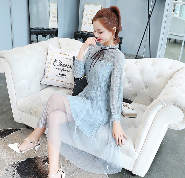 スカート部分はプリーツのメッシュレースが重なって