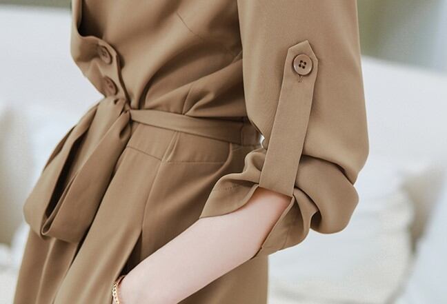 サイドのボタンを外すと落ち感がきれいでマニッシュなガウンカーデになります。