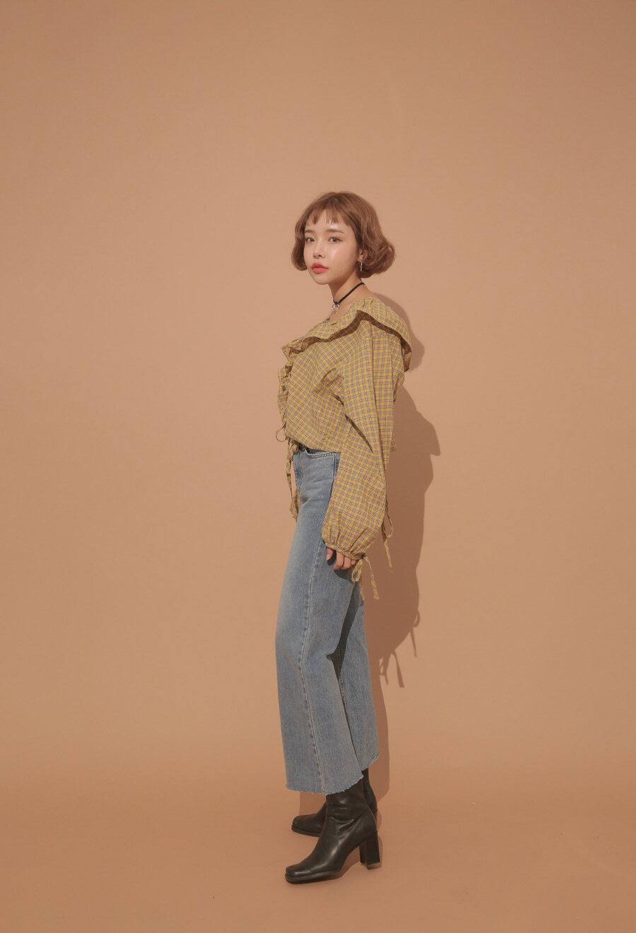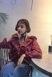 トレンドのレトロなチェック柄のブラウスです。