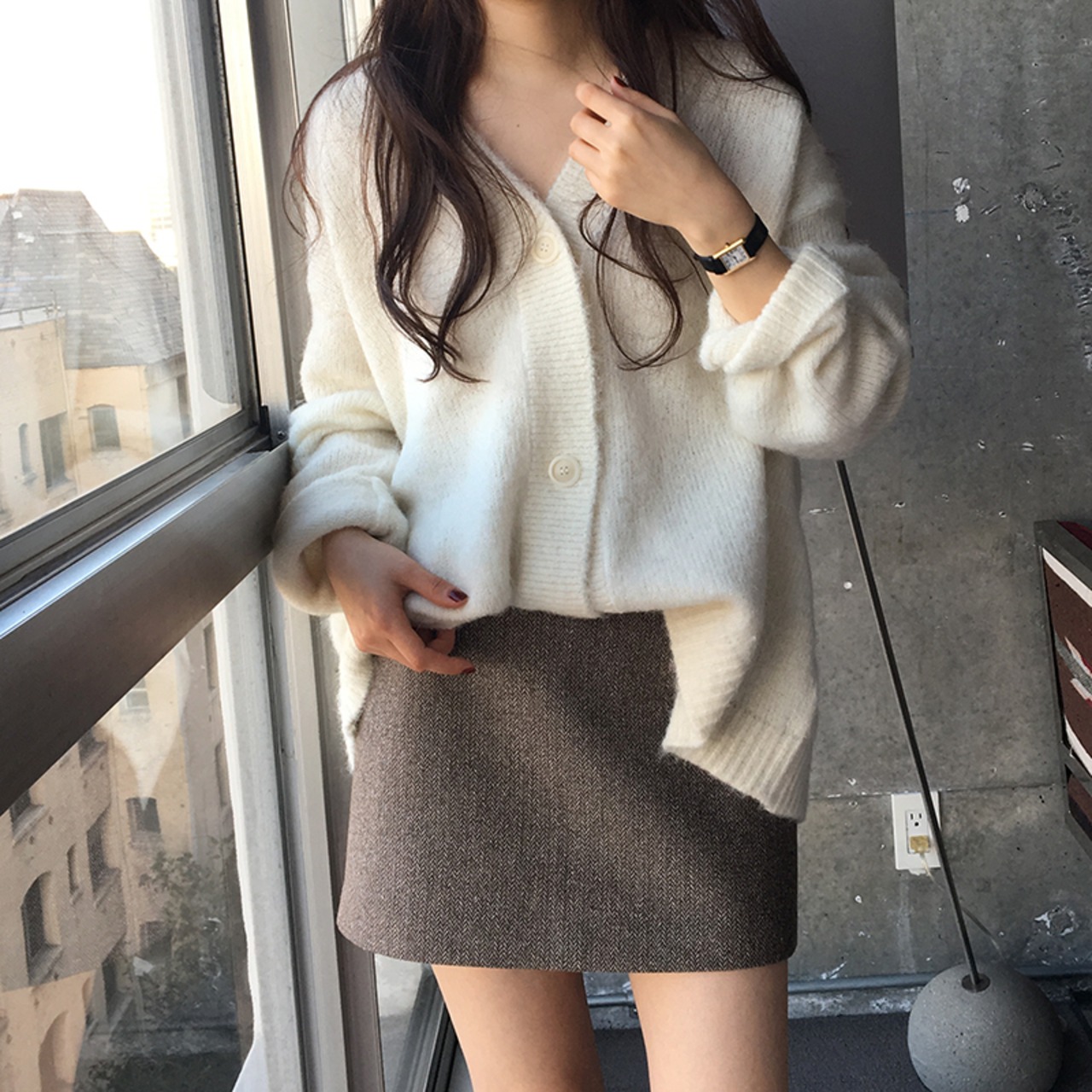 ゆる感がかわいいVネックのニットカーディガンです。