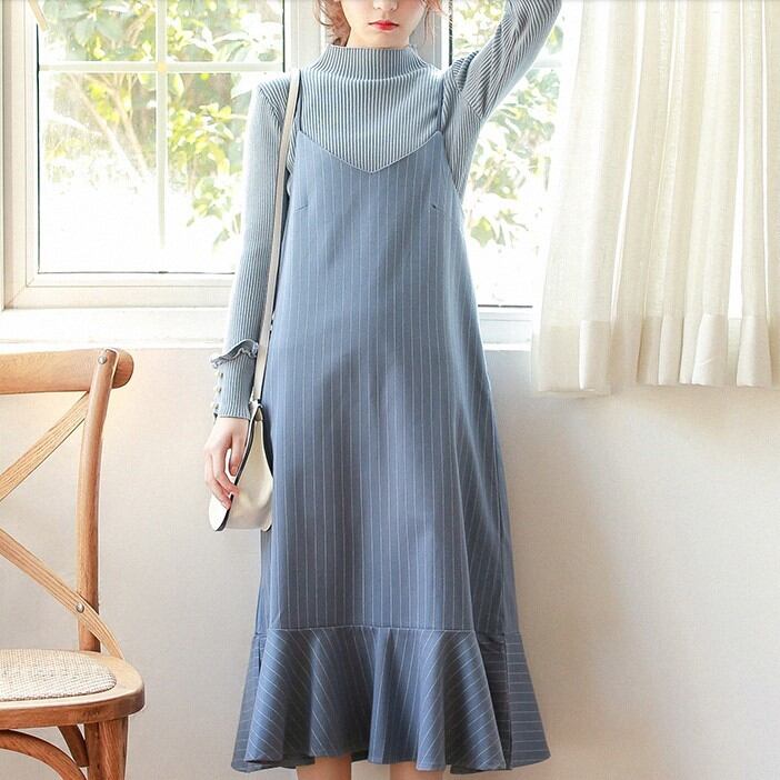 スッキリ細見え効果抜群のストライプ柄キャミワンピースです。
