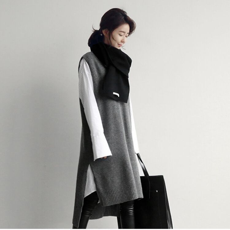 スタイリッシュな雰囲気が素敵なVネックロングニットベストです。