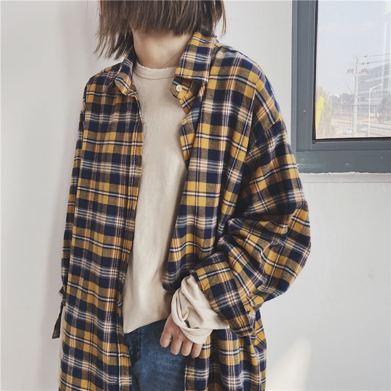 着古したようなヴィンテージ風のチェック柄長袖シャツです。