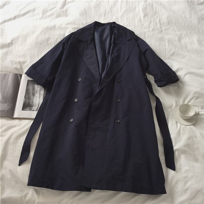 少し大きめの襟がポイントのダブルボタンロングコートです。