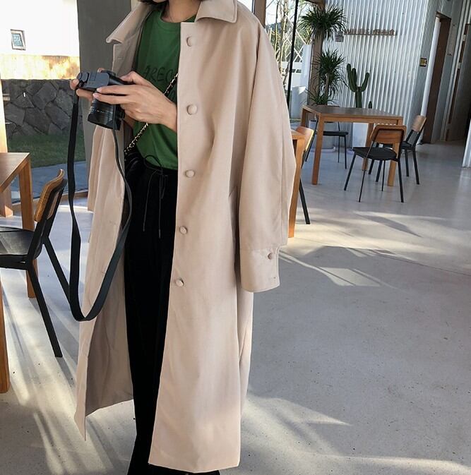 ガーリー ステンカラー ロングコート バックスリット 裏地付き ベンツ 長めカフス クルミボタン 秋冬 A1079