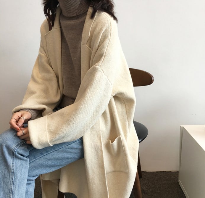ゆったり羽織れるロング丈のニットカーディガンです。