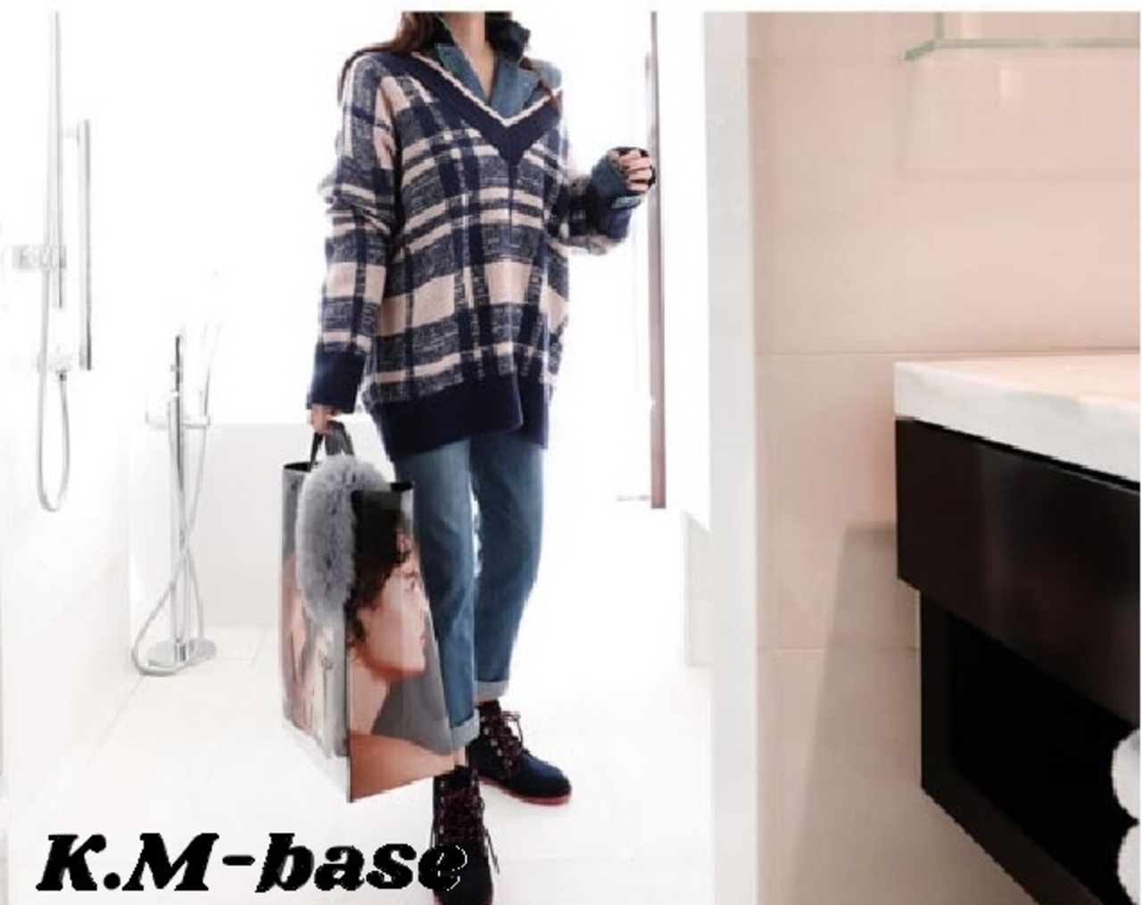 落ち着いた色合いのチェック柄セーター