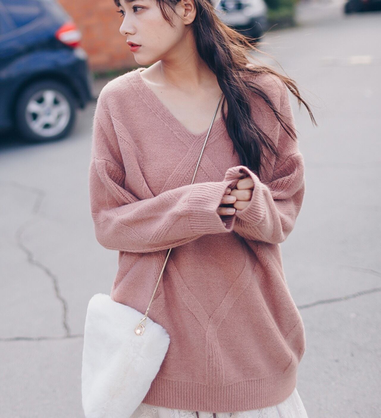 シンプルで清楚な雰囲気のVネックセーターです。