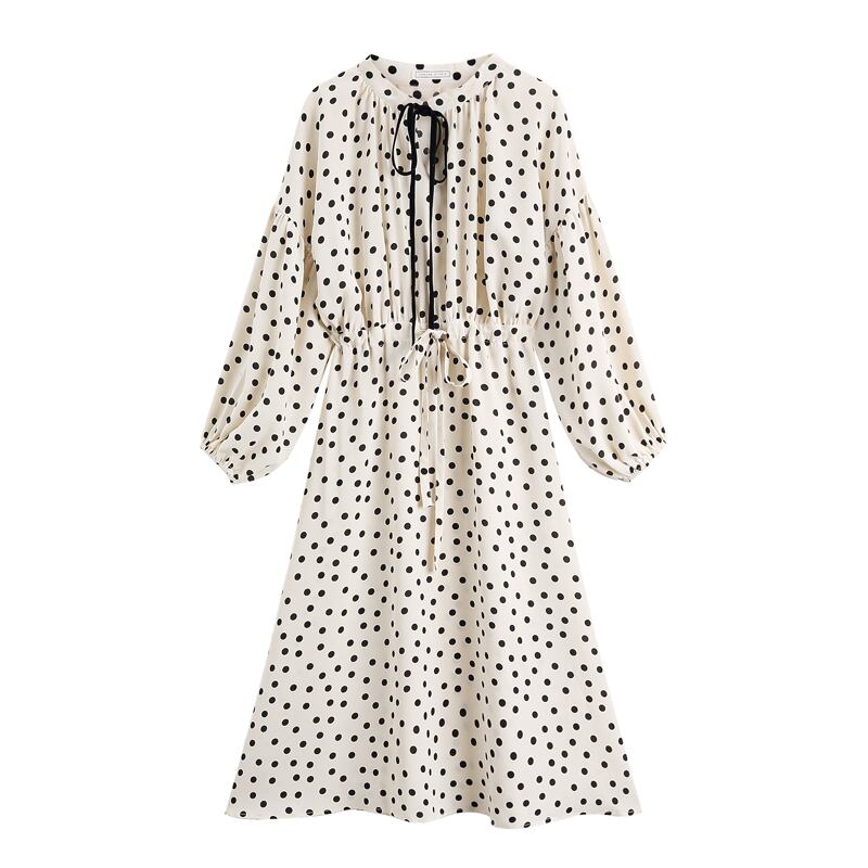 定番人気のドット柄ワンピースをレトロな雰囲気あるデザインに仕立て上げました☆