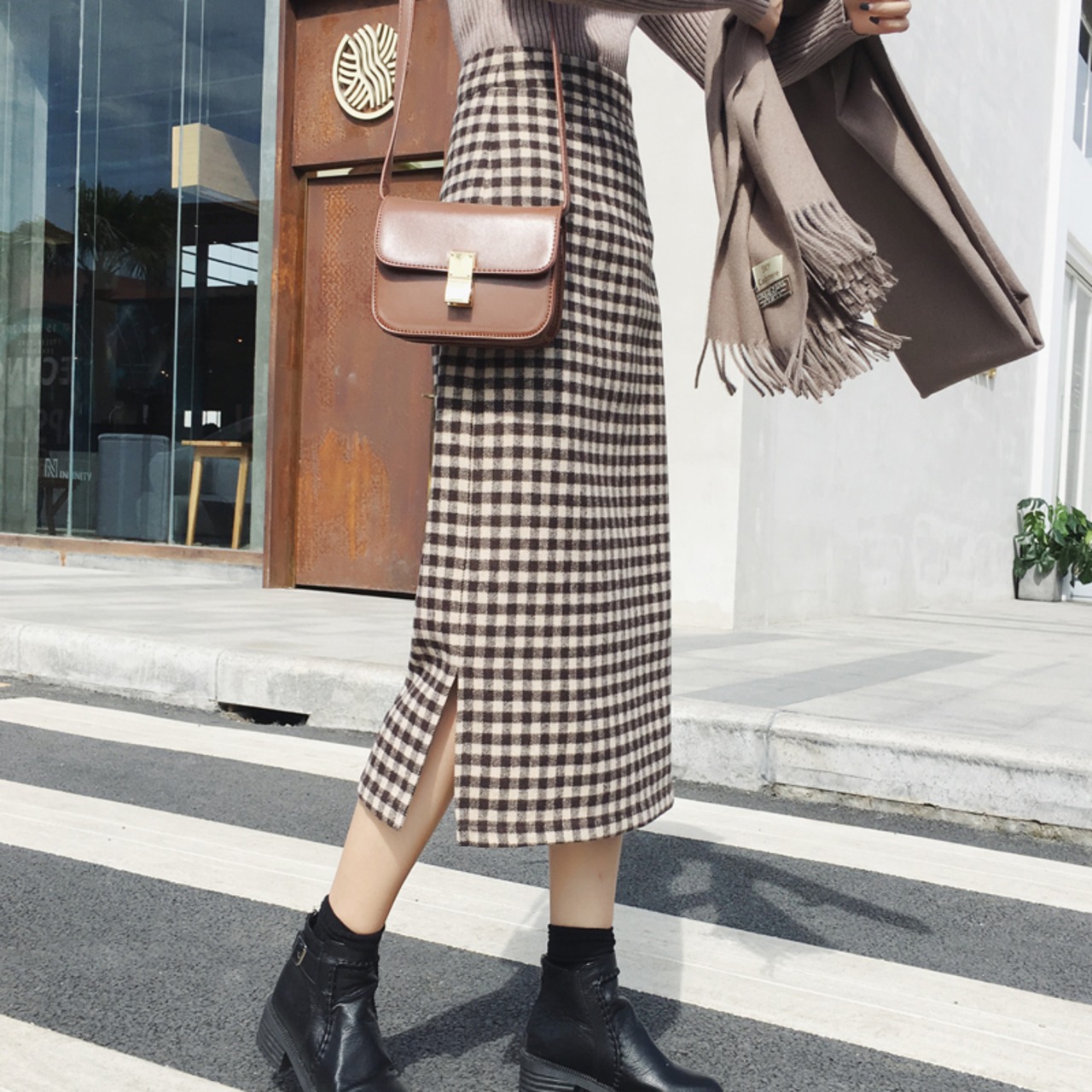 秋冬物 今季トレンド チェック柄 チェック スカート タイトスカート ペンシルスカート スリット ミモレ丈 ひざ丈 トレンド ボトム 女子会 デート 通学 カジュアル 10031 | K.M-base
