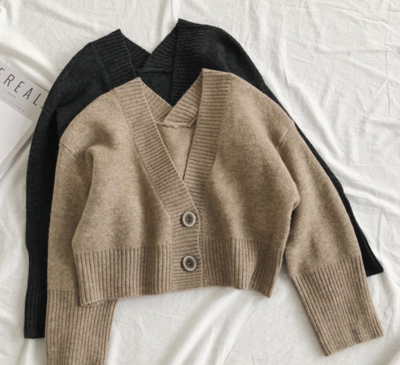 2018 人気のお品 カーディガン セーター ニット シンプル Vネック ショート丈 カジュアル キャンパス 10046