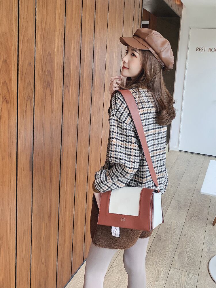 人気 売れ筋 長袖 クルーネック ニット セーター チェック レトロ カジュアル 女子会 デート 通学 オフィス 10055