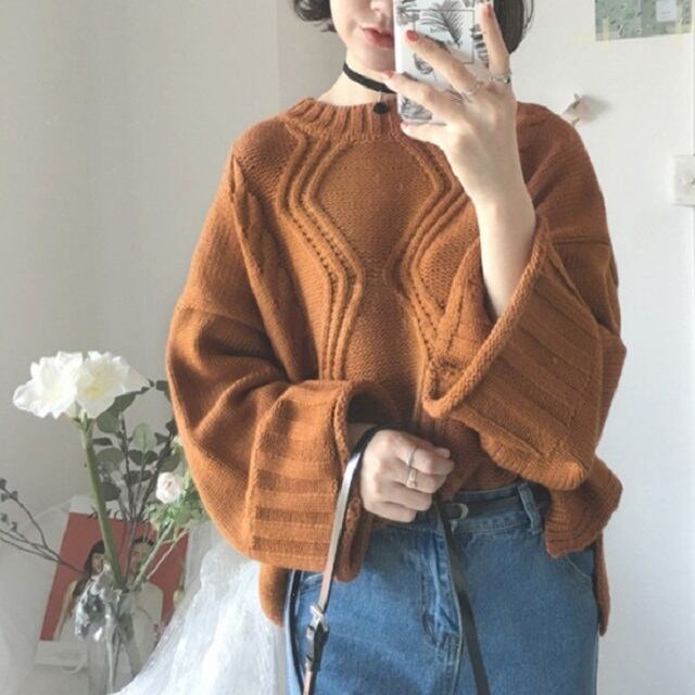変形ケーブル編みで、シンプルな中にも個性が光るニットトップスです☆