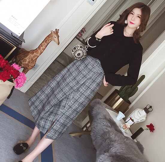 大人っぽく上品な雰囲気の膝丈チェック柄スカートです。