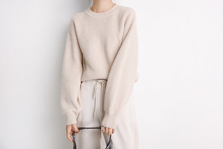 シンプルでカジュアルな長袖クルーネックニットです。