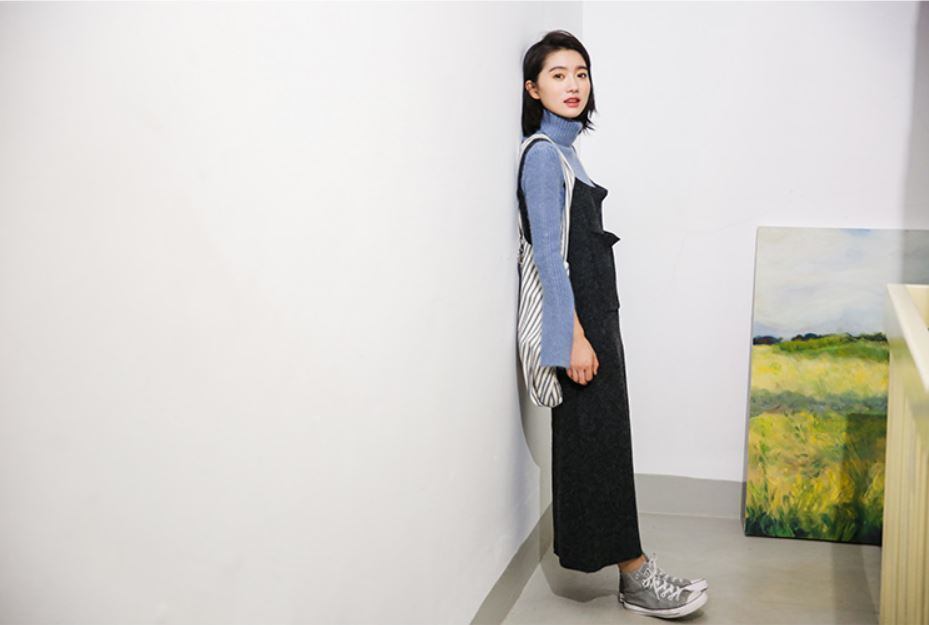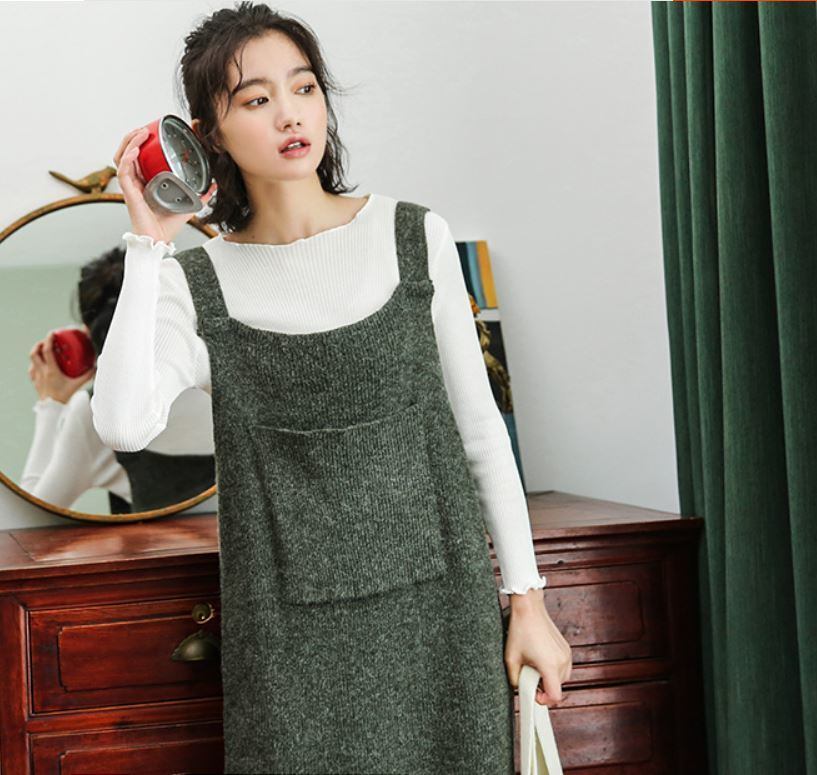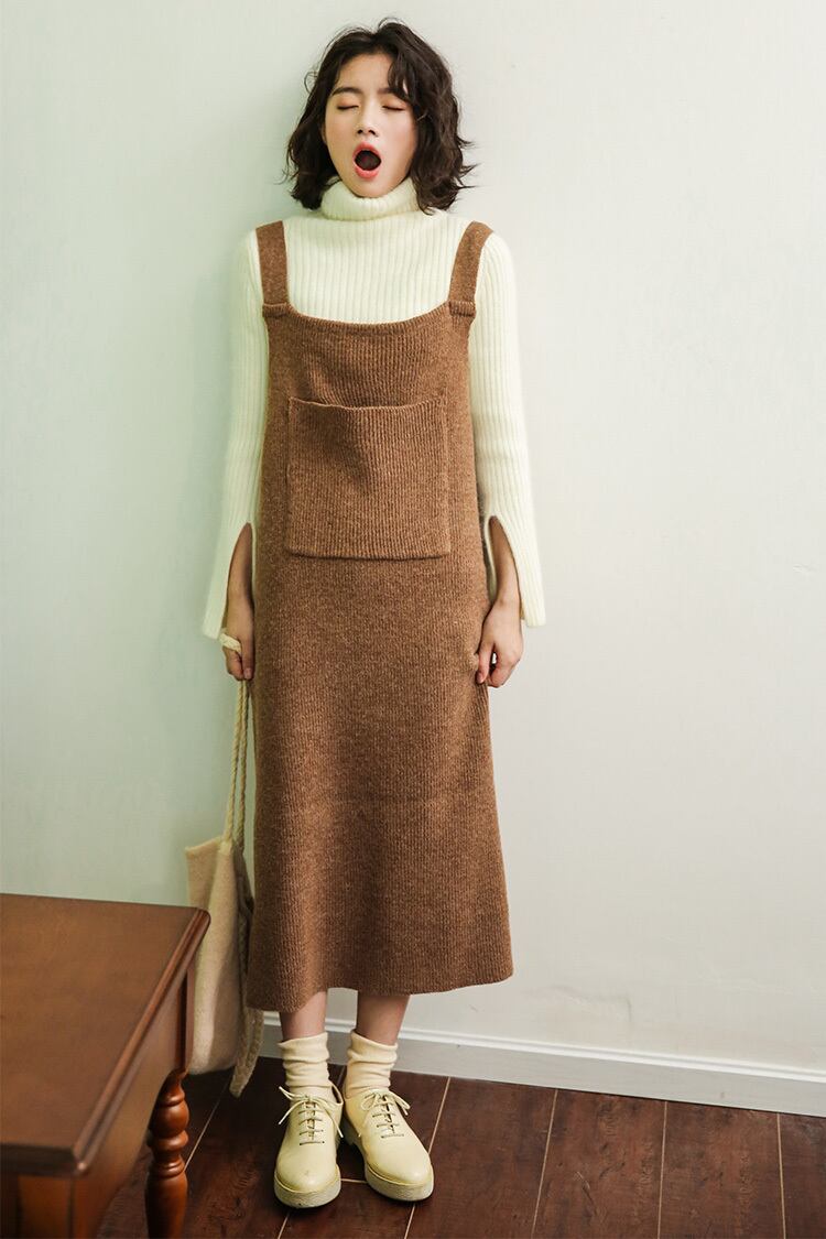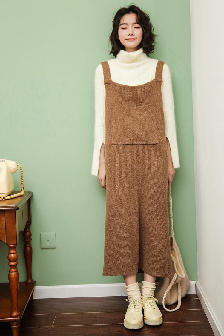 ニット素材がとってもオシャレなトレンドのジャンパースカート♪
