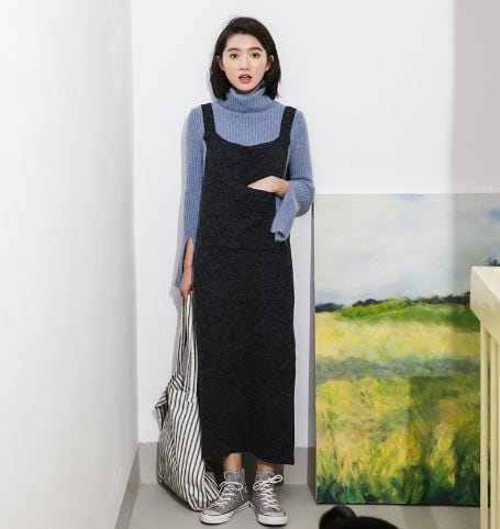 秋冬 NEW 人気 ワンピース ニット ストラップスカート ジャンパースカート お洒落 カジュアル ガーリー ロング丈 女子会 デート 通学 10079