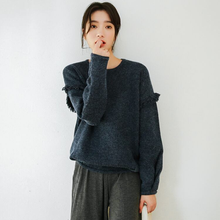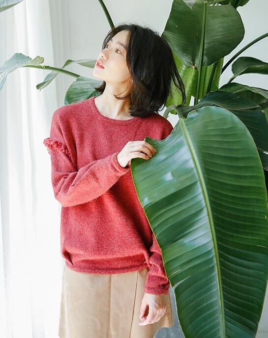袖部分はフリンジがあしらわれ、シンプルな中にもディテールにこだわった1枚となっております。
