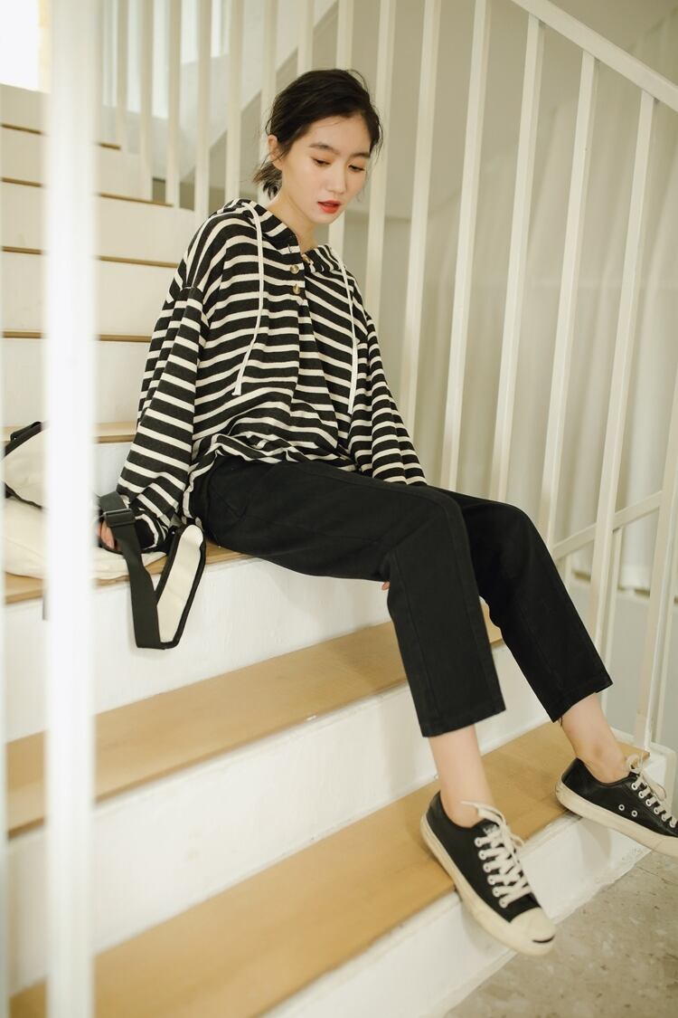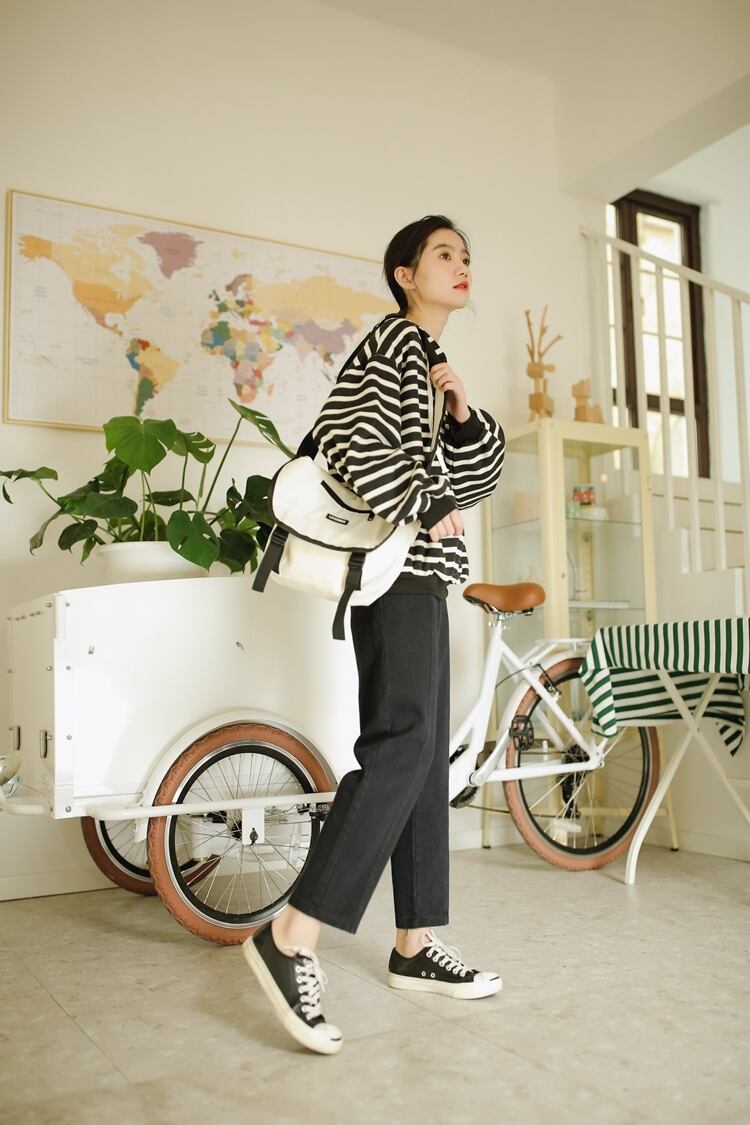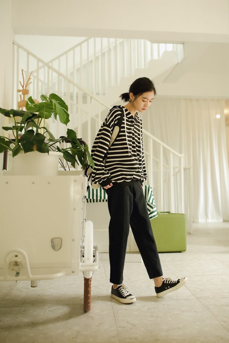 足首がちらりと見えるアンクル丈がとってもオシャレな印象を与えてくれますね。