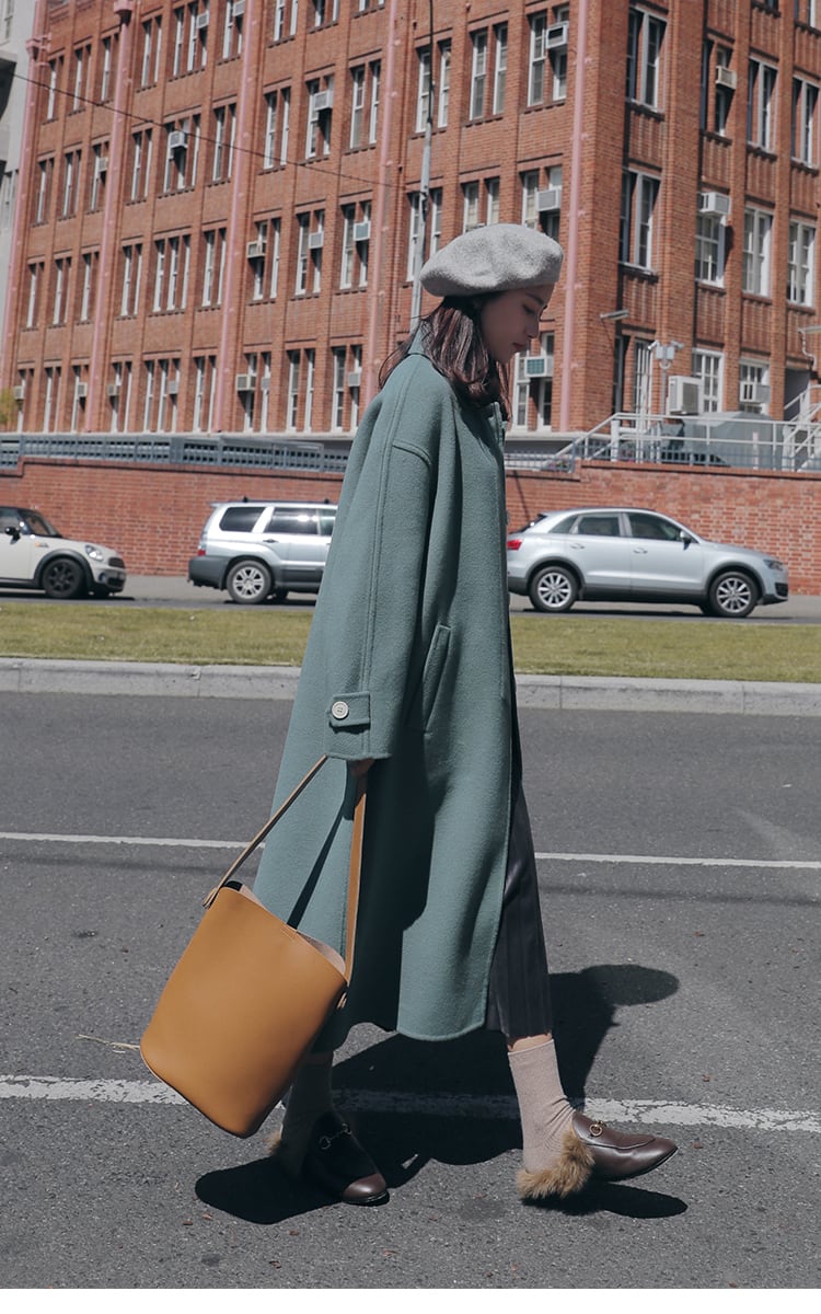 秋冬新作 2018 コート ロング ウール調 スリット マキシ シングル アウター 羽織り 無地 シンプル オーバーサイズ 体型カバー グリーン オフィス 通勤 女子会 デート 10123 | K.M-base