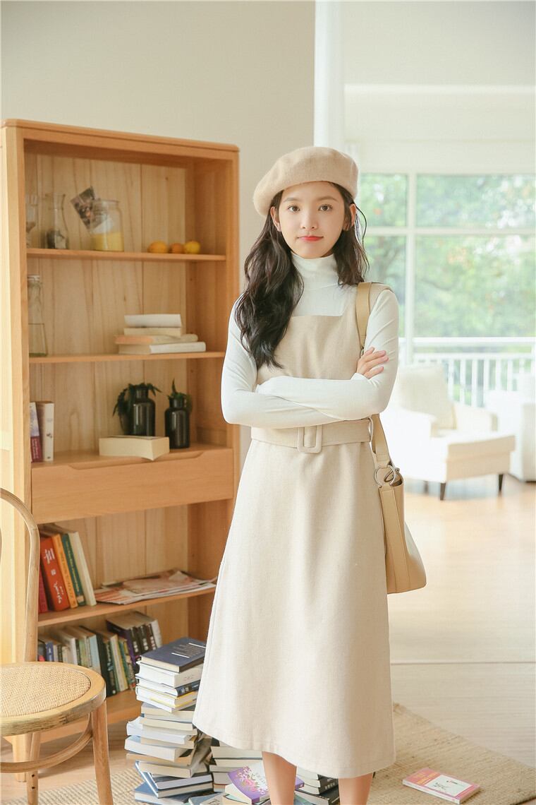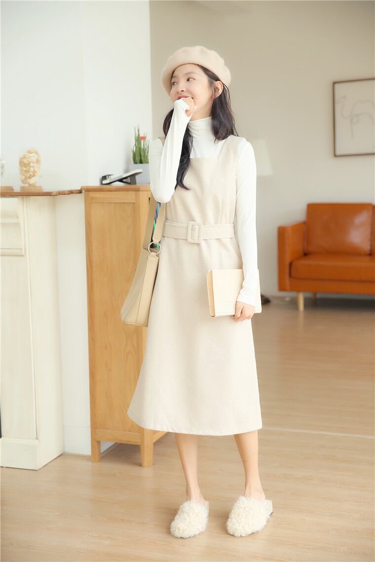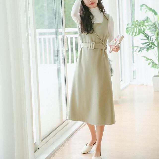 オススメ 新作 2018 秋冬 ワンピース ミモレ ひざ下 Aライン フレア ワンピ ジャンスカ ベルト 無地 シンプル ガーリー 定番 女子会 デート 通学 カジュアル 10131 | K.M-base