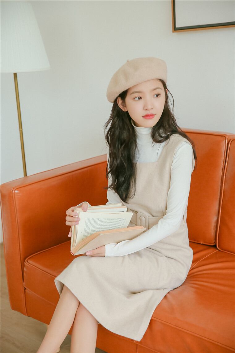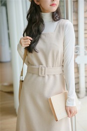 シンプルデザインと優しい色合いで清楚さをアピールするサロペットワンピースです◎