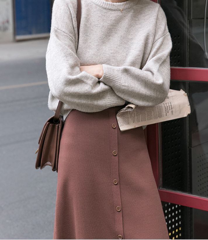 ハイウエストでスタイル良く、Aラインのシルエットがとっても可愛いニットスカート♪