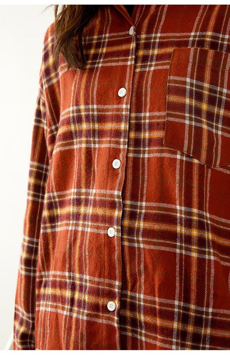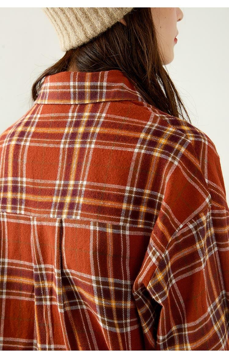 秋冬シーズンにピッタリなカラー感で、カジュアルムードを引き立てる、チェック柄シャツシャツです。