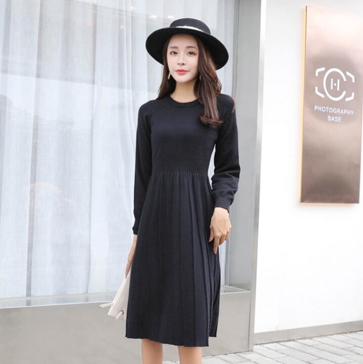 上品に、フェミニンな装いを叶える膝下丈のニットワンピースです♪
