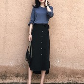 大人女子にピッタリの、シンプルトップス+キレイめスカートのセットアップです。