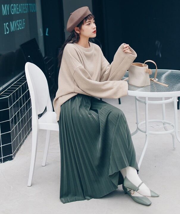 きれいめコーデはもちろん、カジュアルコーデにも相性の良いロング丈プリーツスカートです。