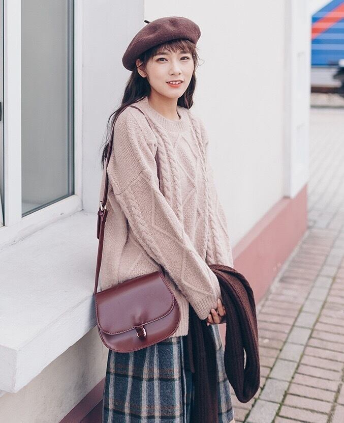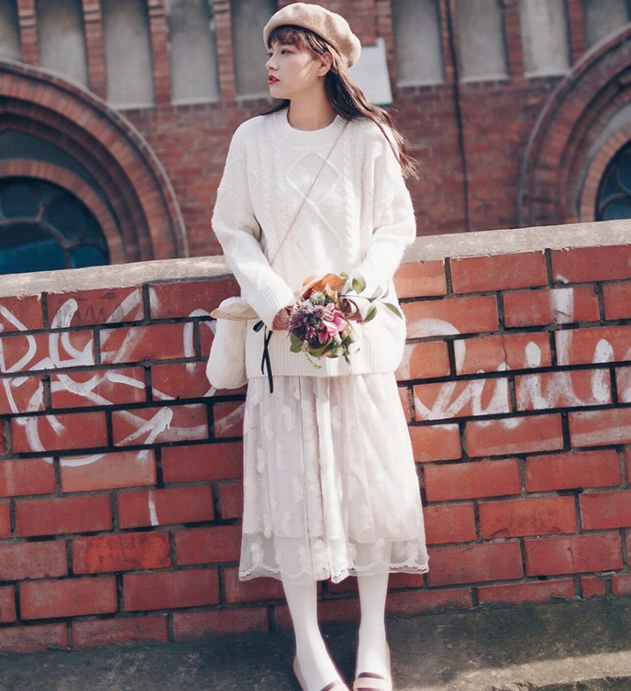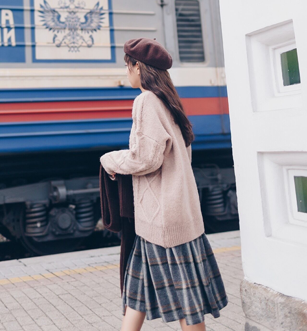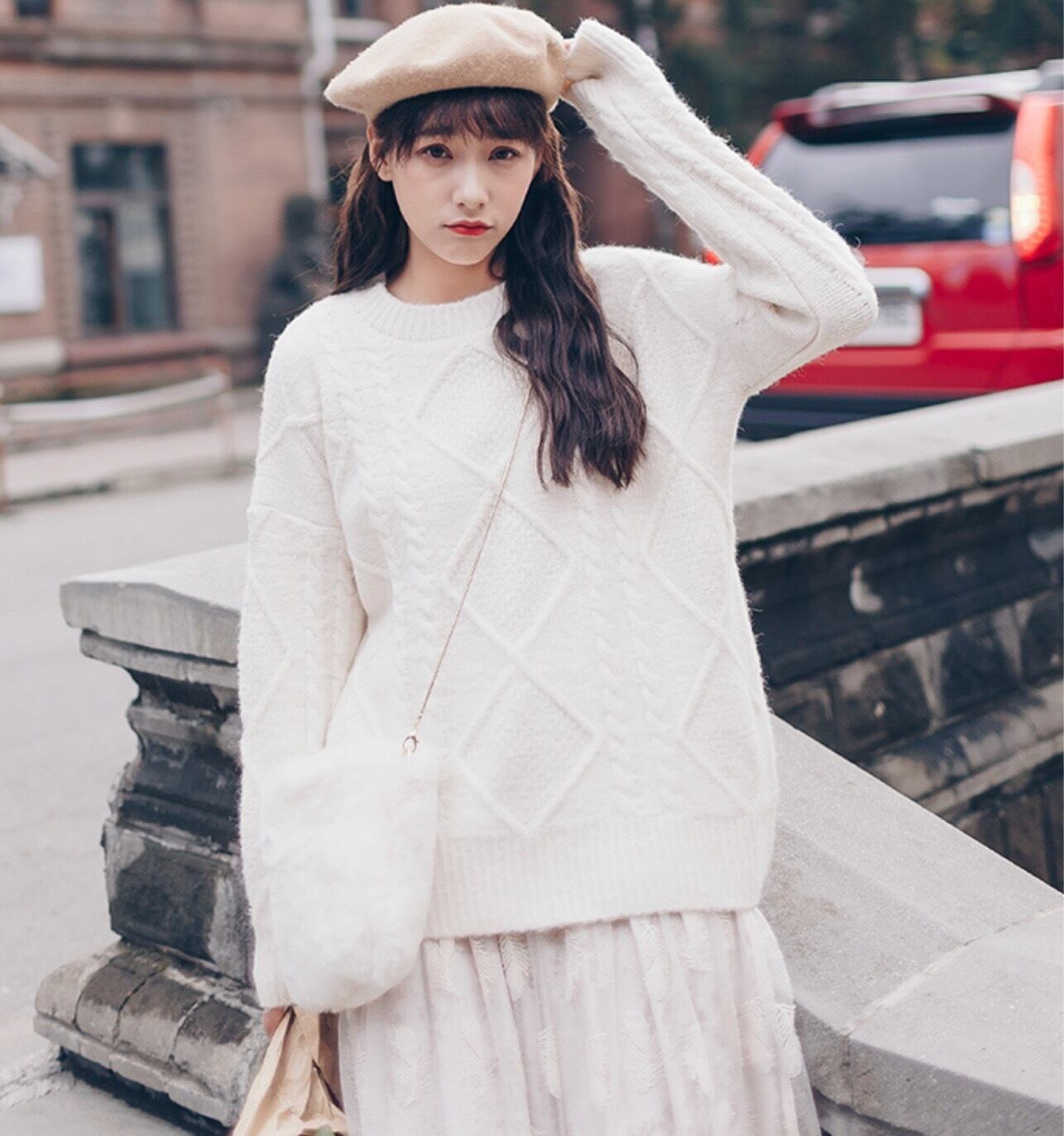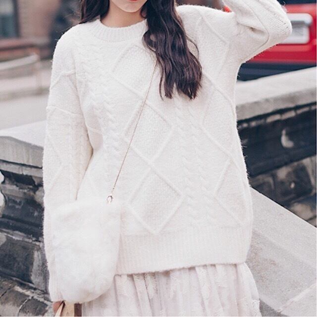 シンプルで上品な雰囲気の長袖クルーネックニットです。