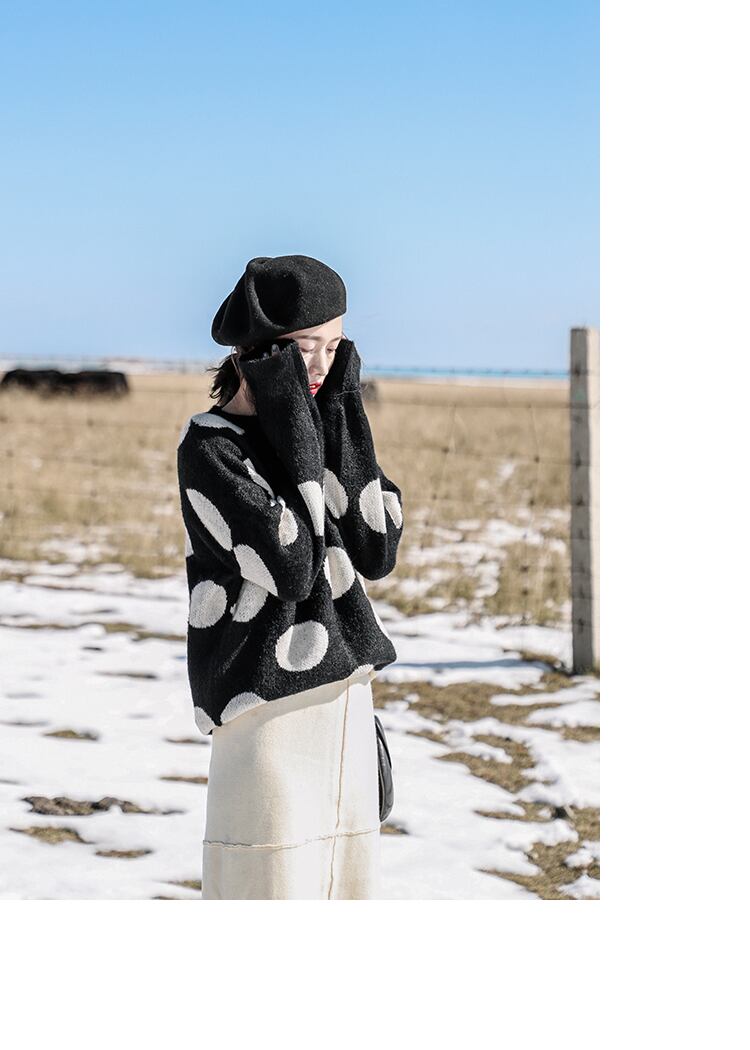 大きめドット柄がパっと目をひく主役級のニットトップスです◎