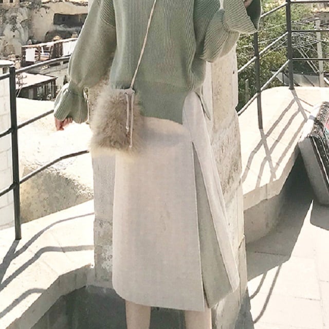 フロントにスリットを入れて絶妙なバイカラーで切り替えたデザイン性抜群の1着。