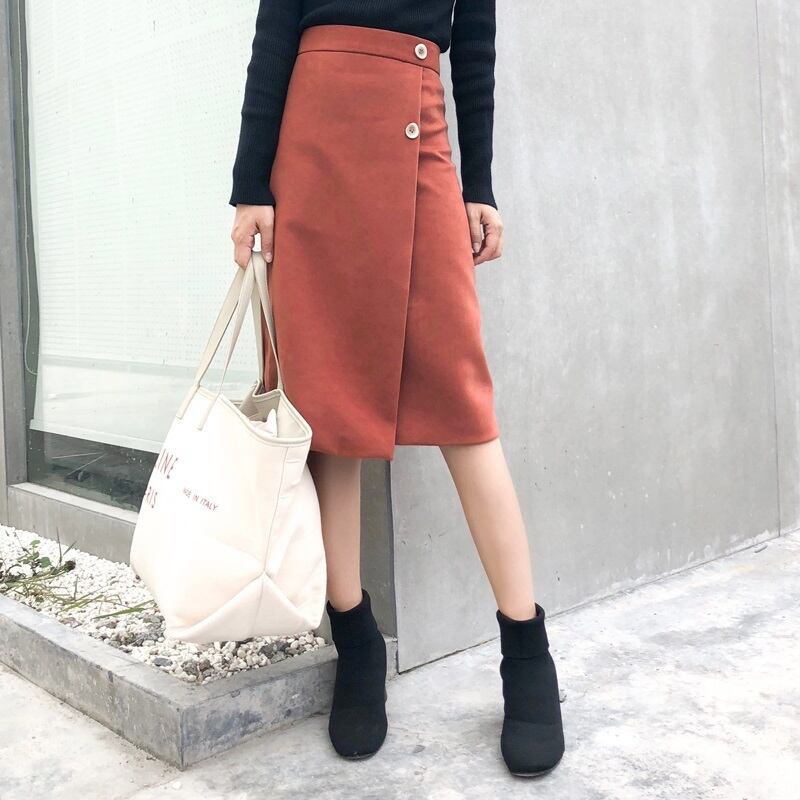 トレンドのラップ風スカートに落ち着いたひざ丈で、大人っぽい着こなしが出来るきれいめボトムス◎
