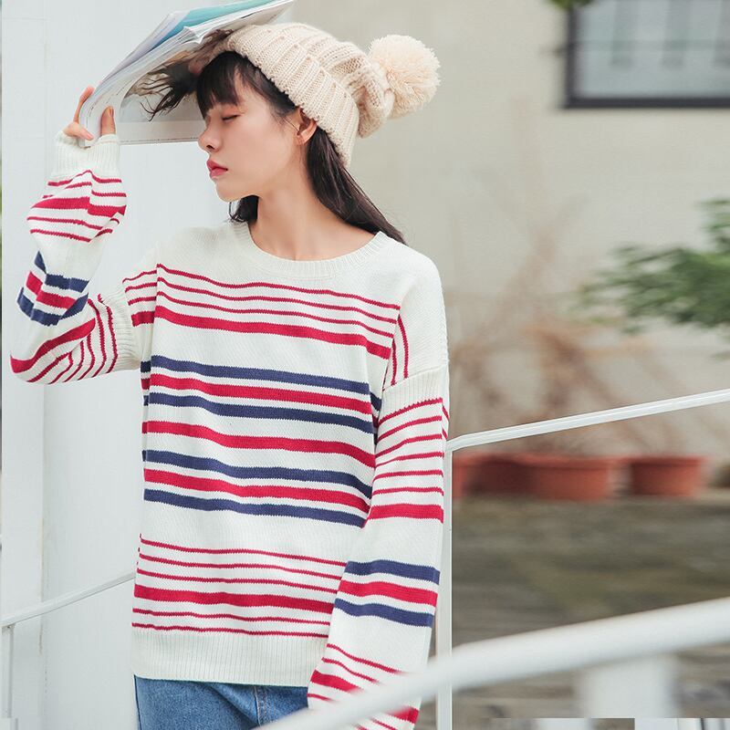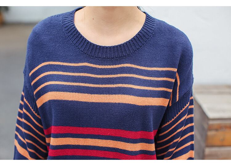 おしゃれなマルチボーダー柄のラウンドニットトップスです♪