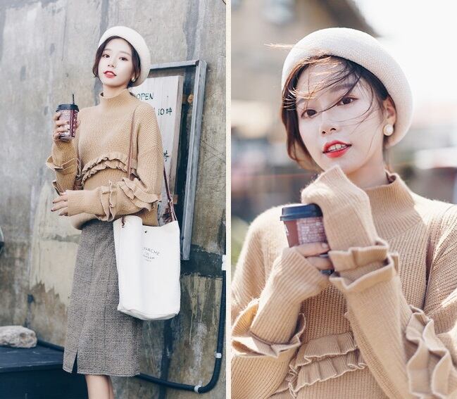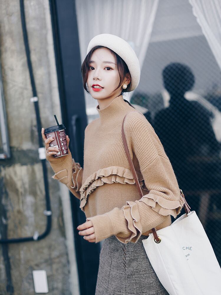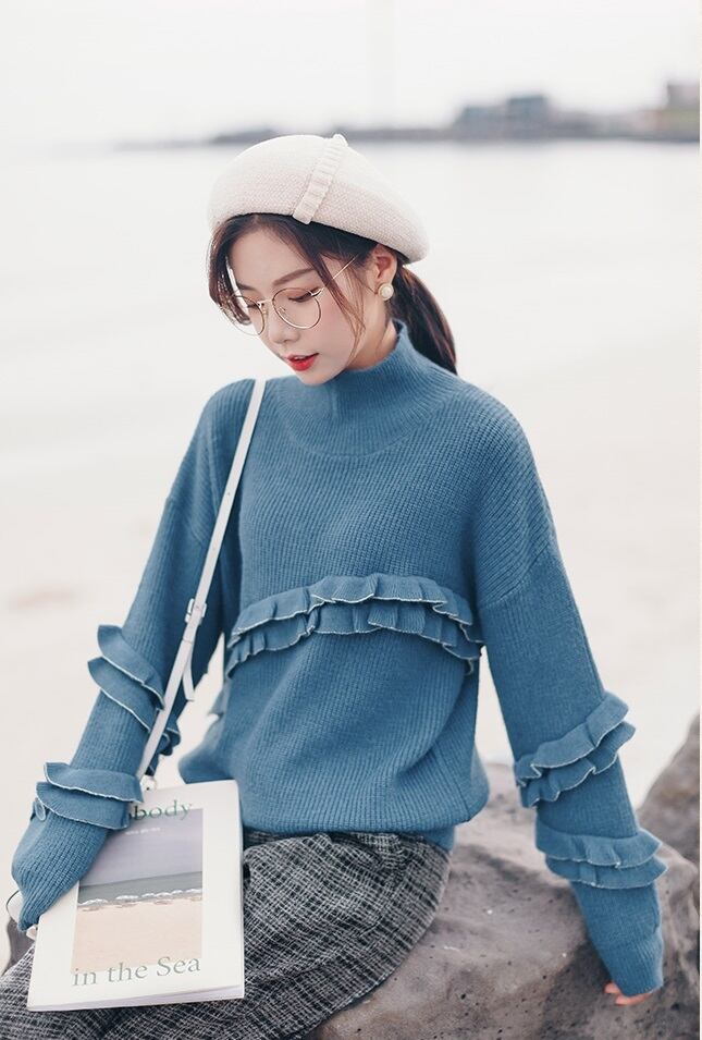 シンプルな畦編みニットにフリルディテールを詰め込んだ可愛らしいニットトップスです☆