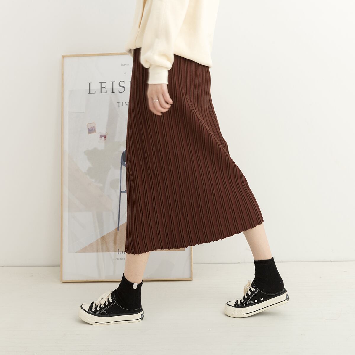 今季大注目のニットプリーツスカートは広がりすぎないシルエットでクラシックな印象に。